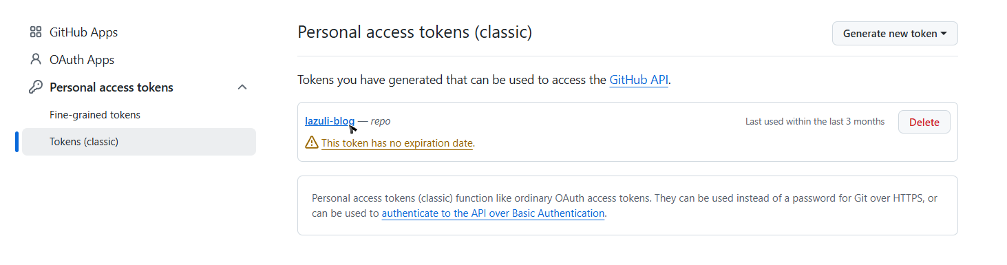 进入Github之后,点击右侧头像-点击settings-在左侧最下方点击developer settings-然后可以看见tokens管理界面